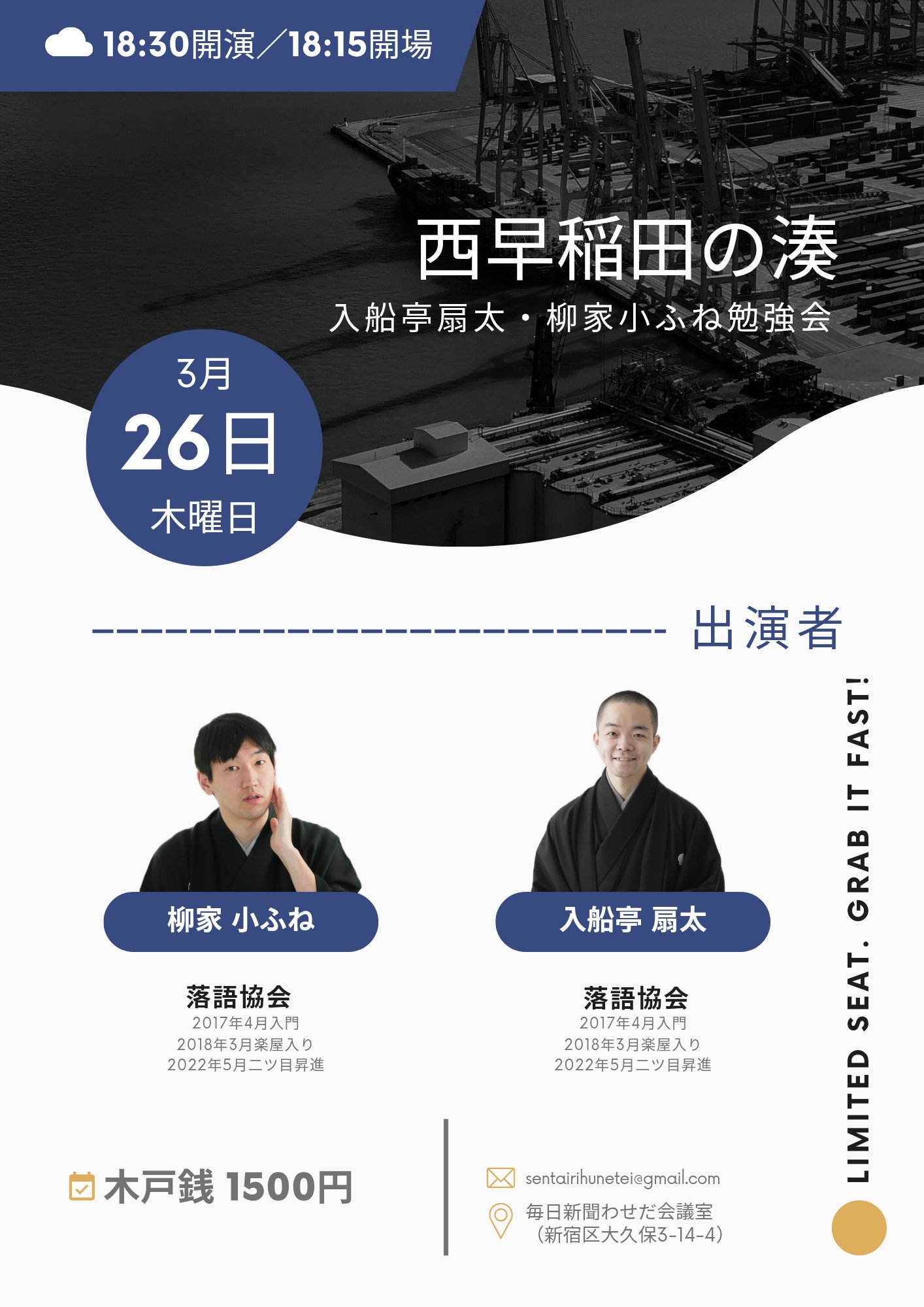 西早稲田の湊 入船亭扇太・柳家小ふね勉強会(3/26)