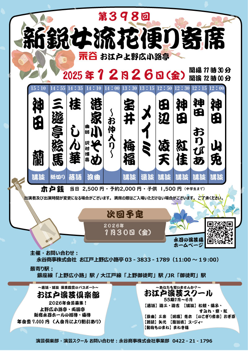 2025年12月の最前線【前編】 (「イベントスペース鈴丸」オープン、講談のオススメ入門書③)