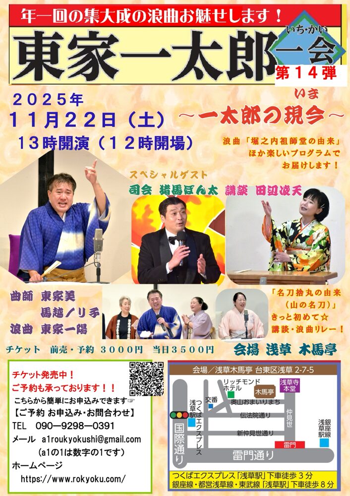 ラジオからテレビの時代に移り、浪曲人気が低迷してきた時代から今まで、浅草の木馬亭が浪曲定席、浪曲の寄席として、浪曲を守り続けてくださっています。木馬亭を愛し続けてきた師匠浦太郎と大師匠東家楽浦にならって、私一太郎も10年以上、浪曲協会で木馬亭担当を務めさせていただいています。