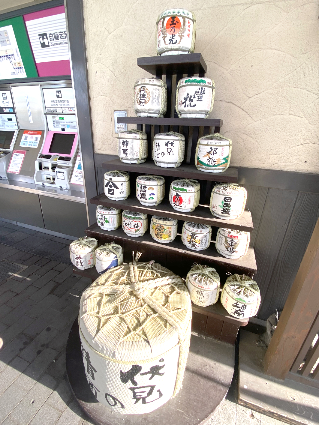 中書島の駅からして「幕末のまち伏見 名酒のまち伏見」の看板と、四斗樽ピラミッドが待ち構えているという、まさに私を大歓迎してくれてるような佇まいである。