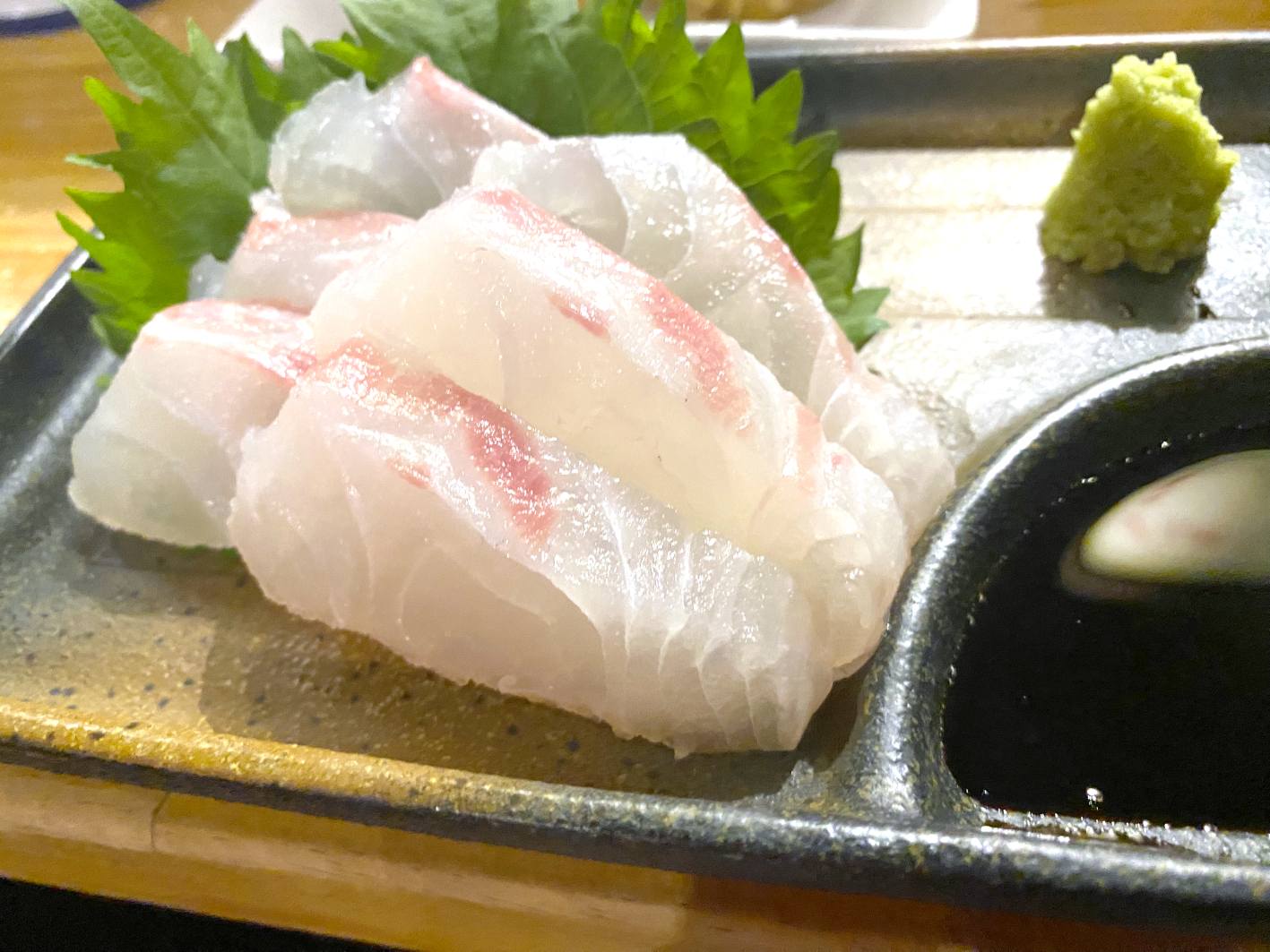 結果、沖漬けや肝あえ、本もろこ佃煮は三段目の普通酒たちが合い、梅なんこつは全般万能に合ったのだが、一番のオススメは……鯛の刺身に、あん肝天ぷらについていた塩胡椒をかけたやつ×都鶴 極辛 純米吟醸(都鶴酒造)のペアでした!