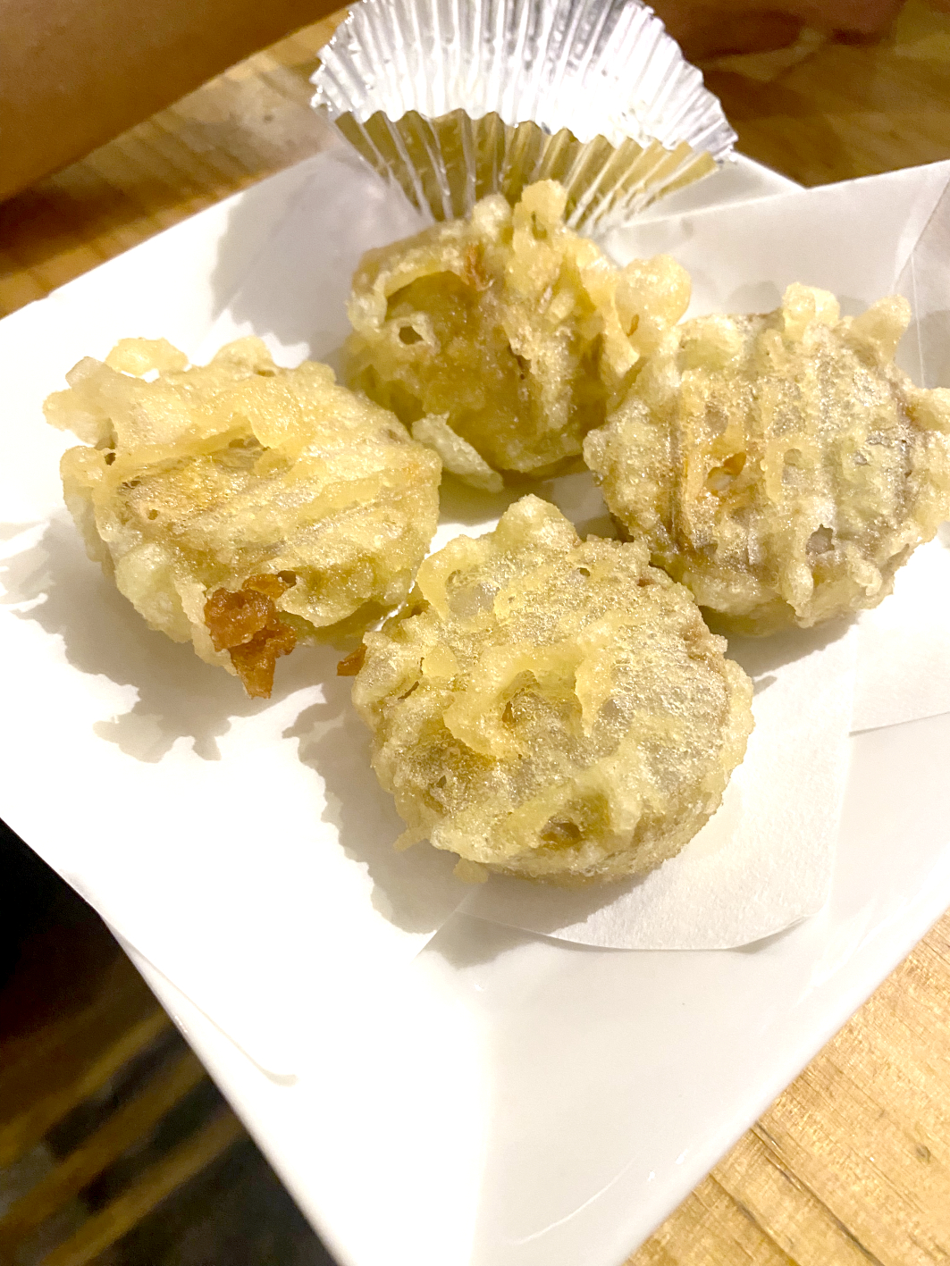 鯛のお造りが、関東じゃあまり見ない?厚切り。ついてくるのは甘めのお醤油。これをつけても美味しいのだが、たまたま、あん肝天ぷらにかける塩が残っていてかけてみたら、もっちり淡白な甘みが塩で際立って、伏見のスッキリ辛口の酒を後から流し込むと、口の中に更に旨みを感じでオススメです。お試しあれ。
