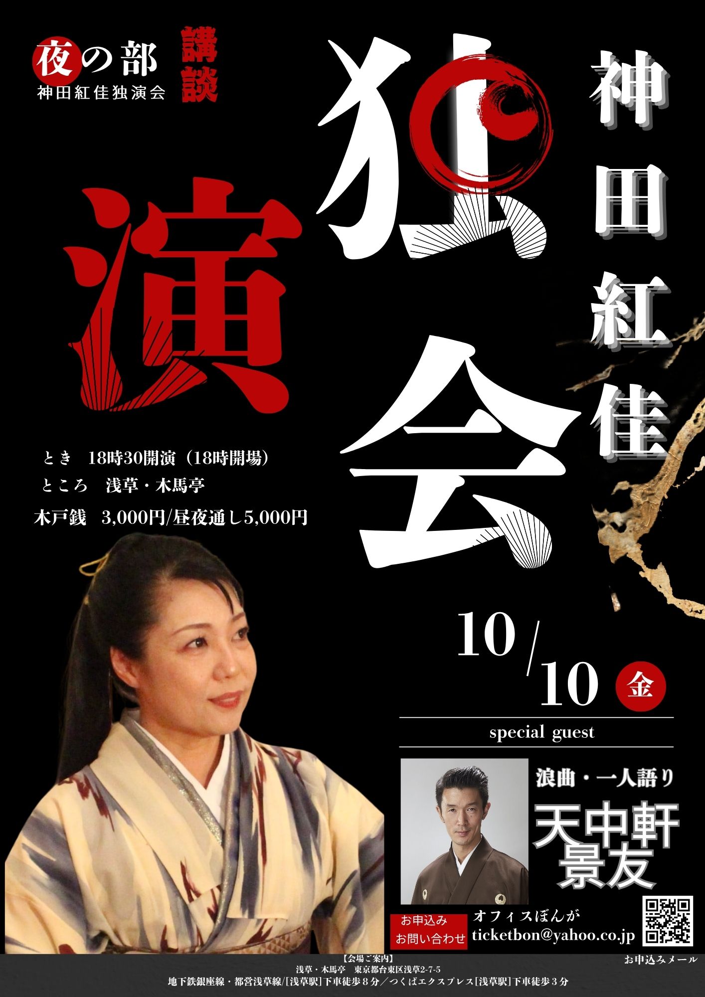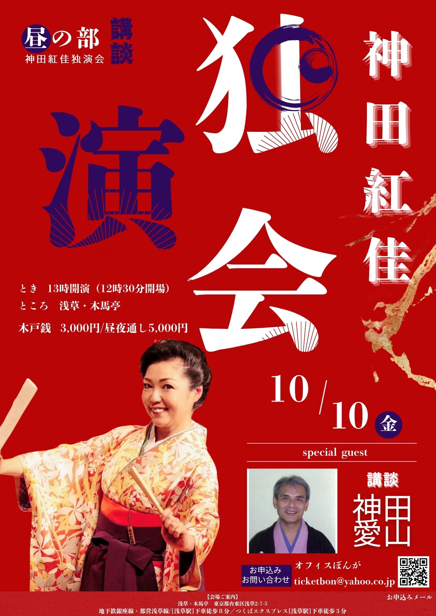 メールに下記の内容を明記の上、メールの件名(見出し)を「神田紅佳独演会ご招待」として ticketbon@yahoo.co.jp までご連絡願います。