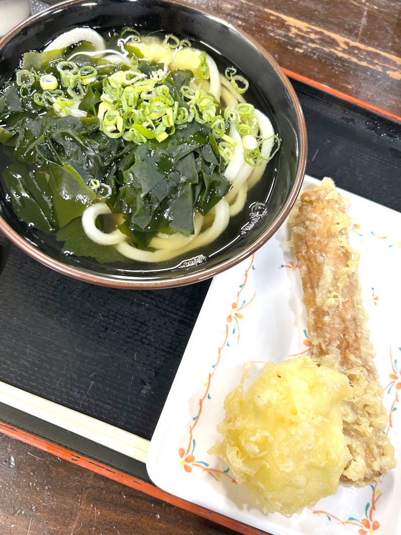 次の日の帰りの空港でも、わかめうどんを食べた。
