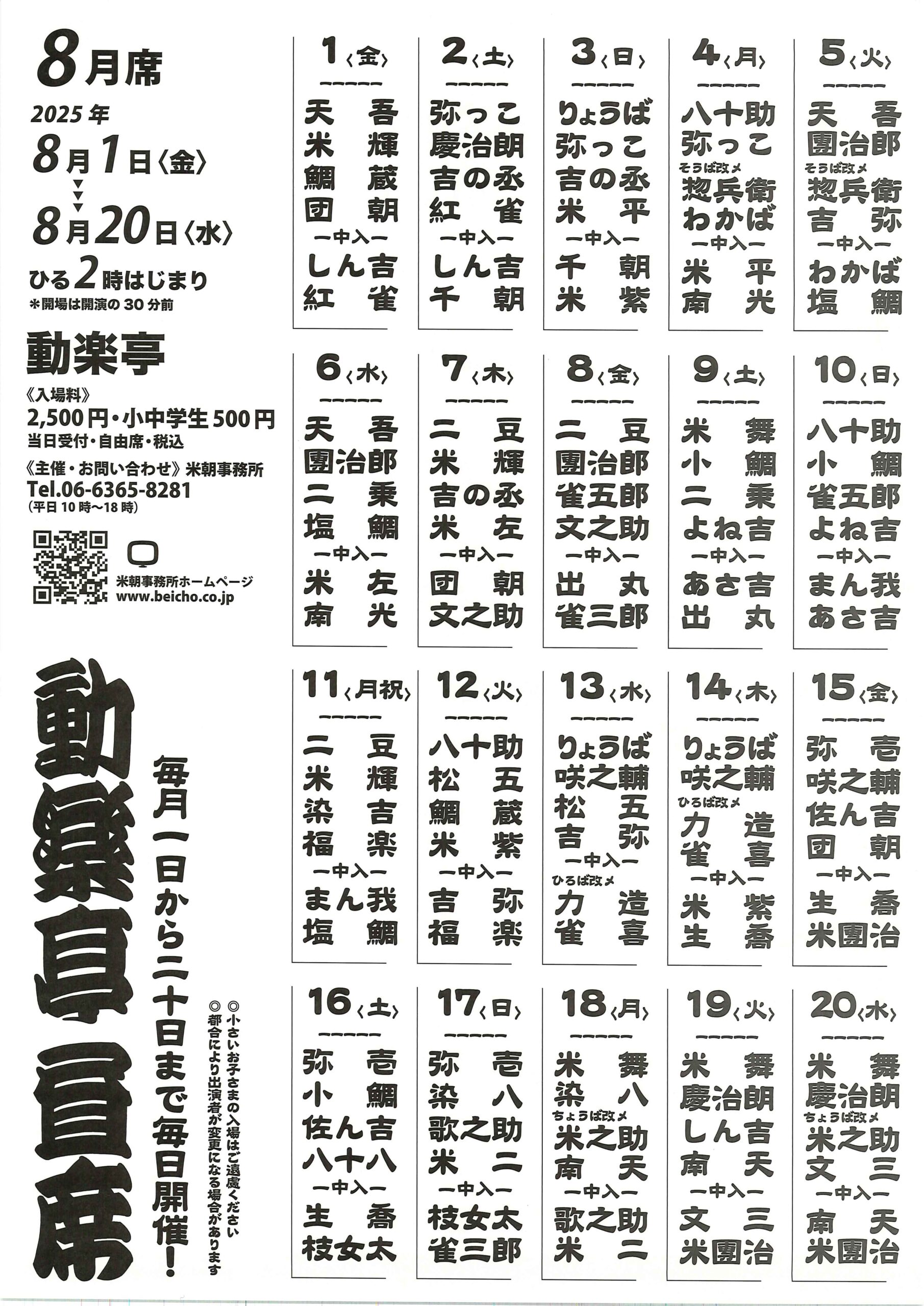 ① 「動楽亭昼席 8月席」 動楽亭(大阪市西成区)