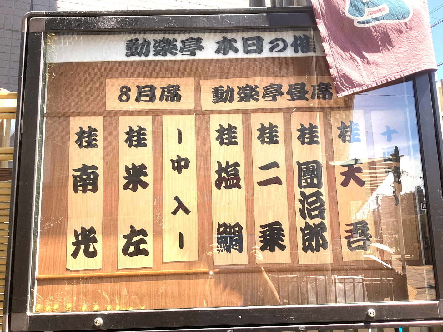 動楽亭は、毎月1日~20日の昼間は桂米朝一門が中心の定席ですが、夜もさまざまな会が行われています。この日は、小佐田定雄先生と桂雀喜師匠がタッグを組む新作の会でした。目玉は、桂阿か枝師匠の初演ネタ『捨て台詞』(小佐田先生作)。怪談噺が続く、贅沢な会でした。