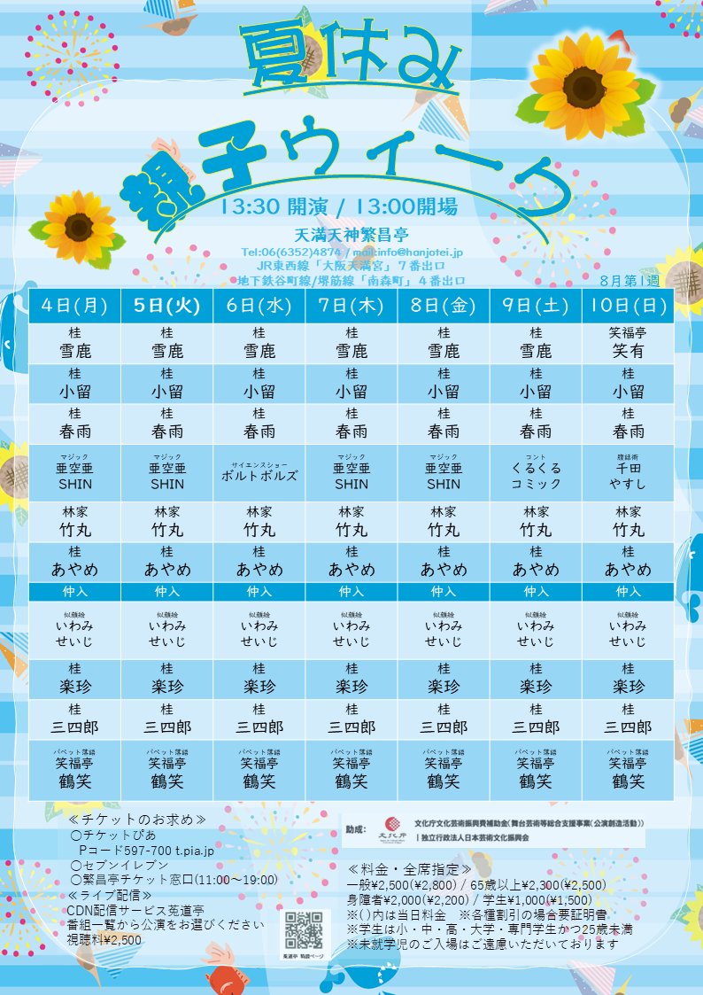 ⑧ 「夏休み親子ウィーク」 天満天神繁昌亭(大阪市北区)