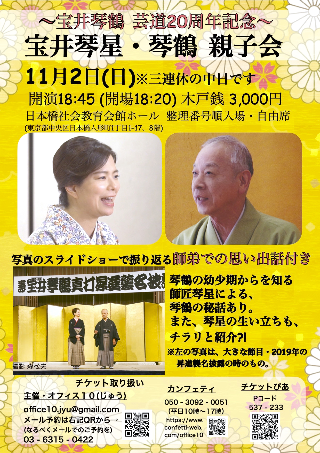 それからまた時が流れて、私も真打に昇進し、大師匠の前名「琴鶴(きんかく)」を襲名。若輩ながらも、弟子一人を持つ身となった。