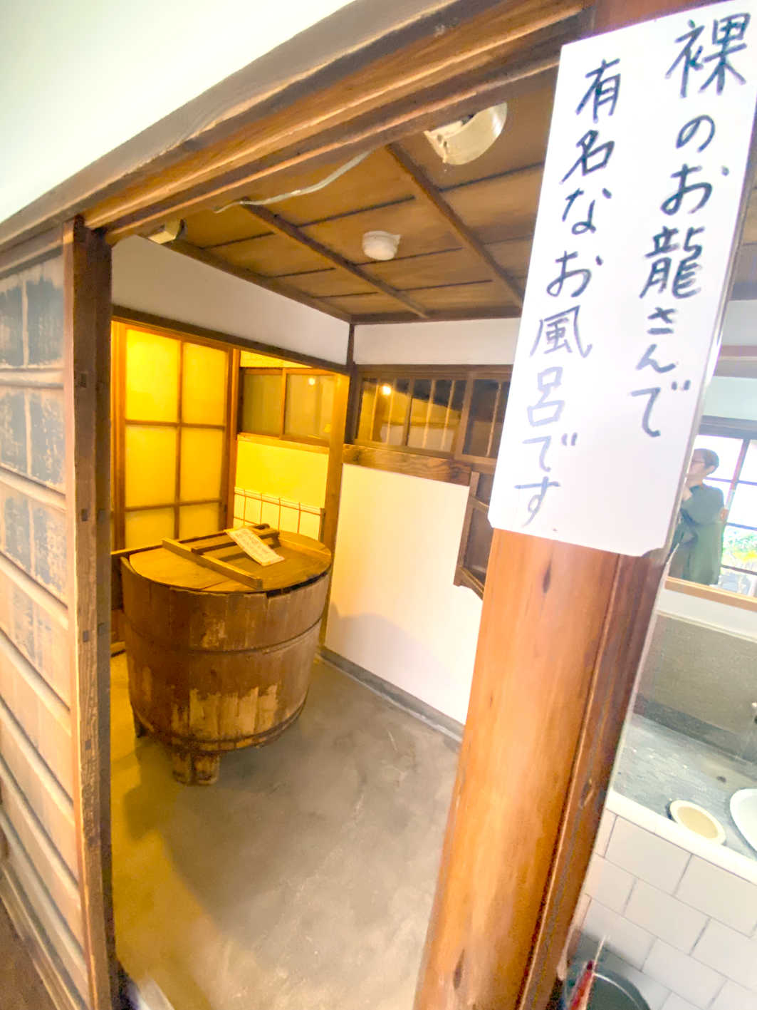 入浴中のお龍さんが幕吏の気配を悟って、急いで階段を駆け上り龍馬に危険を知らせる。小説、映画、ドラマで必ず描かれる寺田屋事件の名場面ではあるが……、観光客のみんながみんな、お龍さんの裸の話しかしていなかったという……。そして中に入り内部を見学すると、例のお風呂場。その貼り紙に