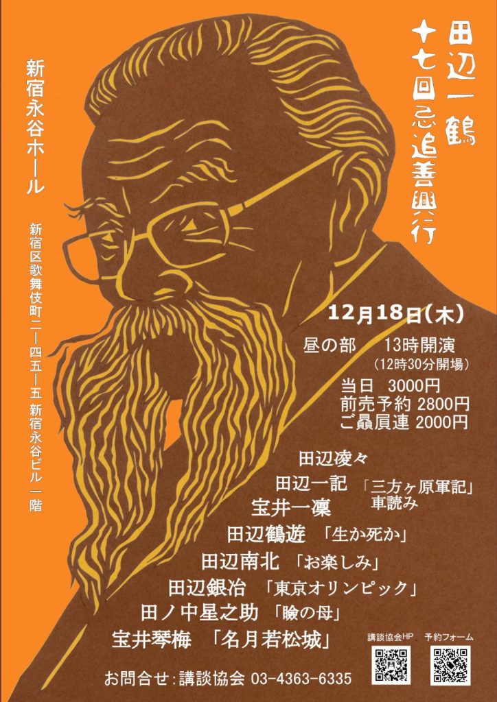 追善の講談会(昼の部・夜の部)はこちら。
