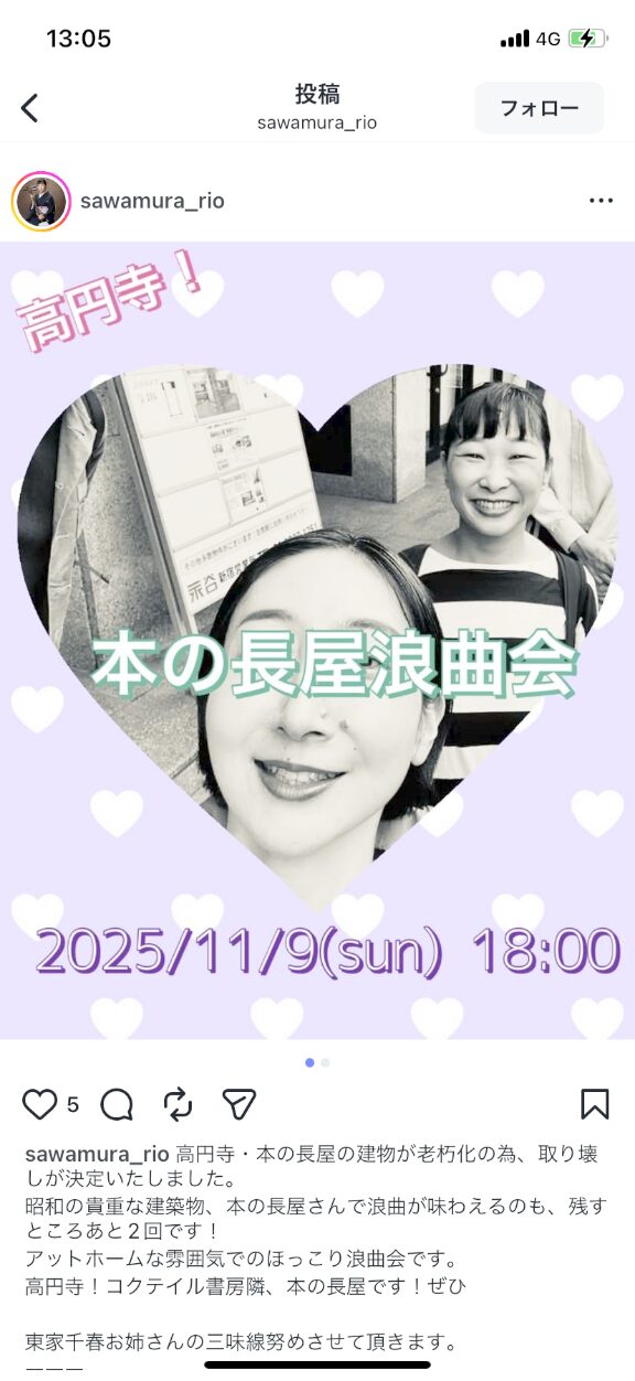 11月9日(日) 本の長屋浪曲会