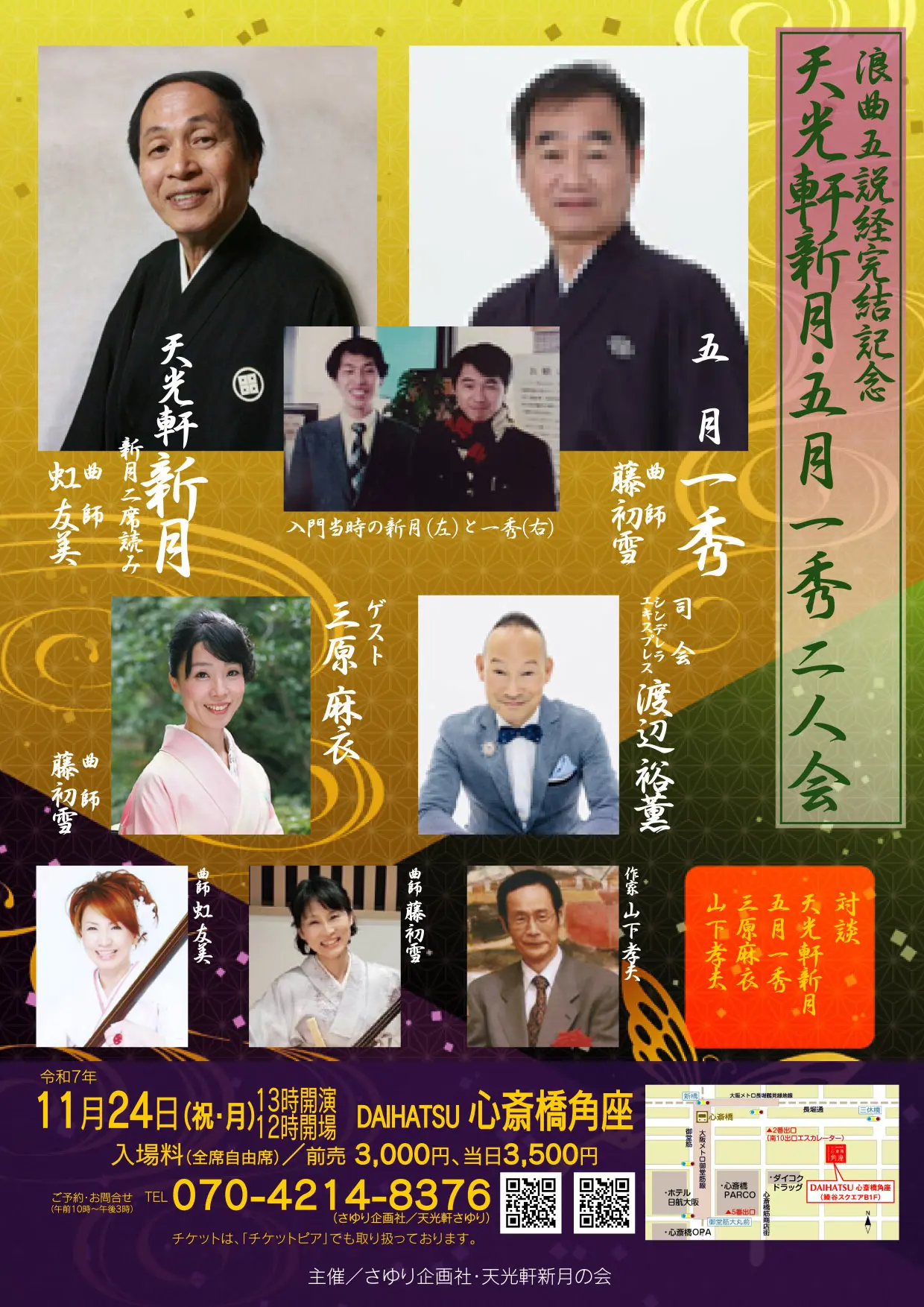 ゲスト・三原麻衣の「命果てるまで」(曲師・藤初雪)を挟んで、次は一秀が「富島松五郎伝」をかける(曲師同じ)。岩下俊作『無法松の一生』は小倉を舞台にした名作小説で、映画化もされている。浪曲化は別の作家によっても行われているが、一秀の「富島松五郎伝」は自身で原作を読みこんで台本を書き上げたオリジナルである。善人だが無学な松五郎が近代化の動きから疎外される哀しみを見事に描いた演目だ。