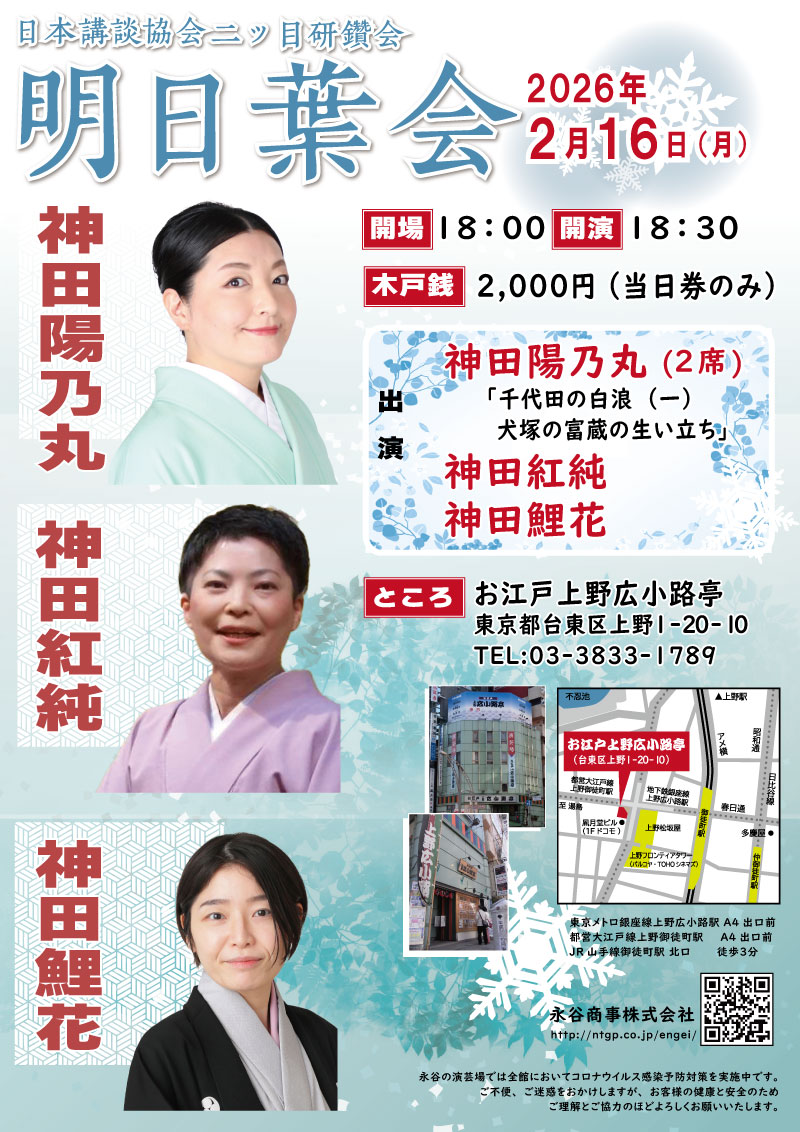 2026年1月の最前線(新春ご挨拶 : 宝井琴調・講談協会会長 & 神田紅・日本講談協会会長、今年の顔 : 田辺いちかインタビュー)