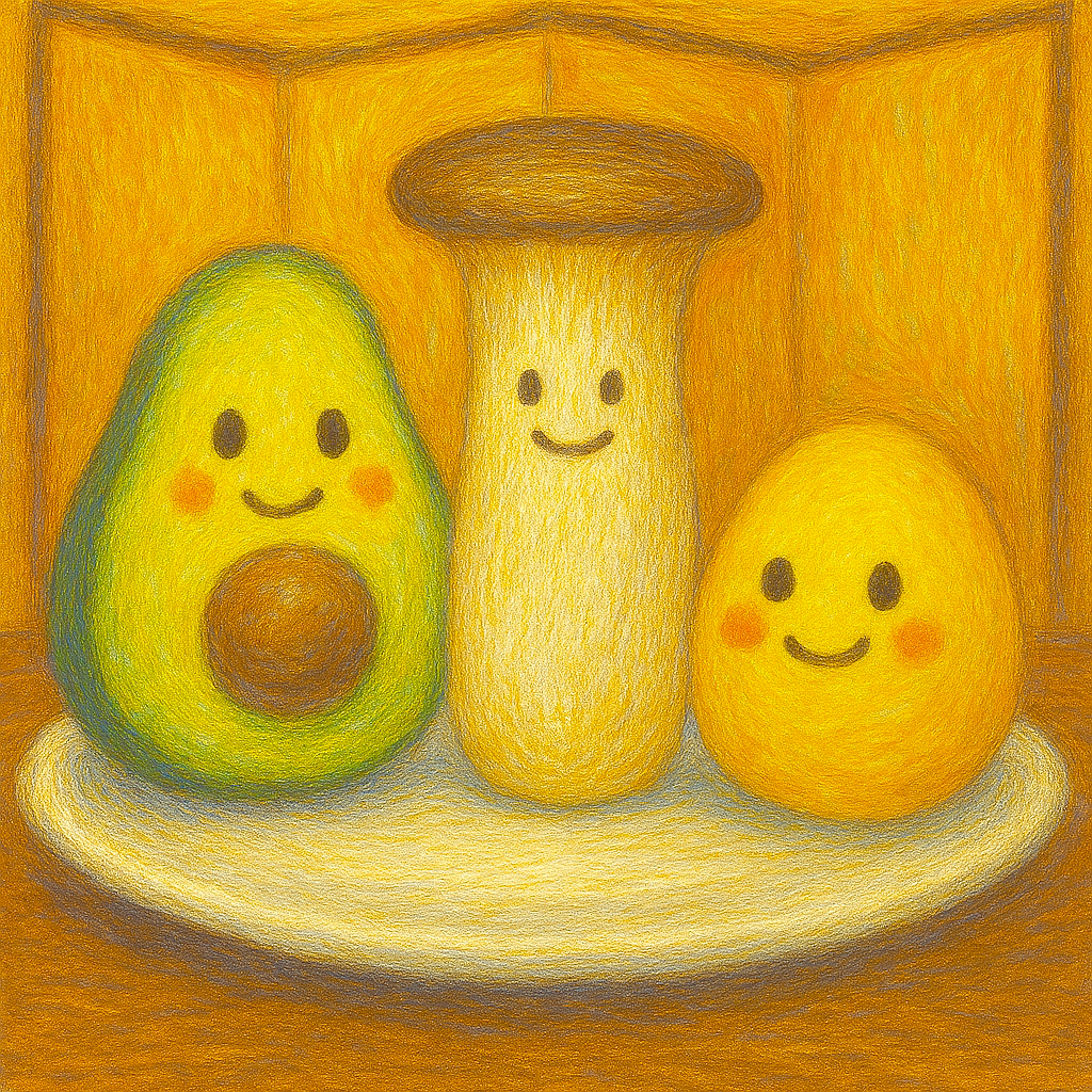 それと、意外な発見もありました。人に渡すつもりなのをいいことに、前にはコワくてやれなかった変わり種の玉子はもとより、アボカド、エリンギまでやってみましたわー。特にアボカドがオススメです。