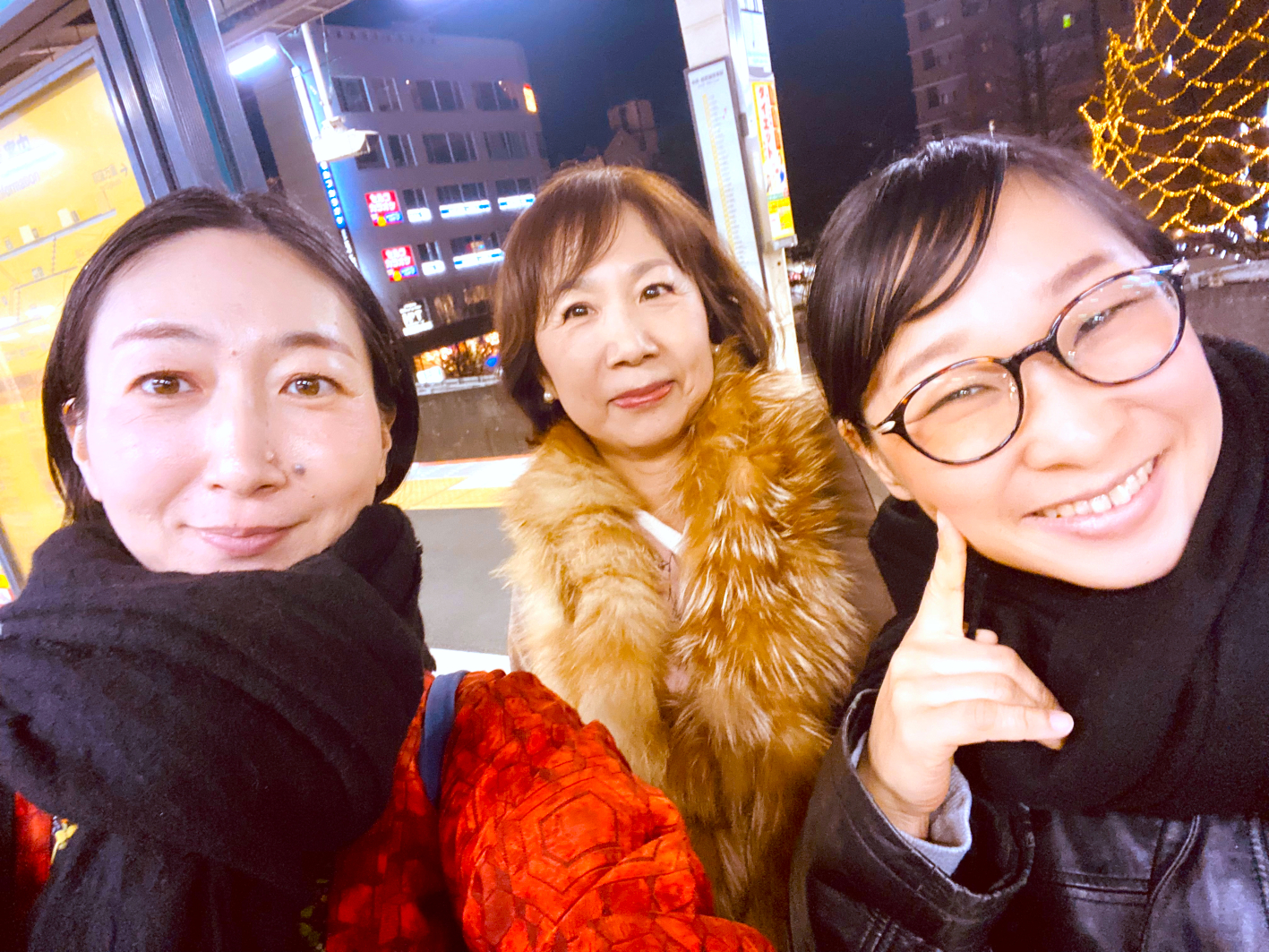 姉弟子の三可子姉さんと、妹弟子の志乃ぶさんと、姉妹会。打ち上げで、わたしは「強力な守護霊が憑いてる」と言われ、志乃ぶさんは「恨みを持った生き霊が憑いてる」と言われていた。申し訳ない気持ち。