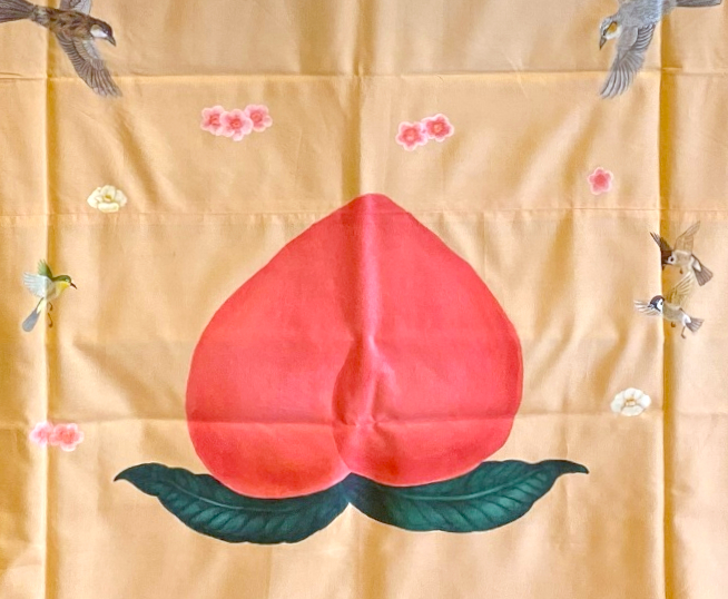 今回からレギュラーメンバーに入れていただき、今回はわたしがトリをとらせていただくことに。この会では、トリの人のテーブル掛けを全員が使うことになっているようなのですが、港家小そめ姉さんは、まじめな浪曲をやるのに、千春さんの尻のテーブル掛けは嫌、とご自身のを使われてました。尻じゃねえし。桃だし。