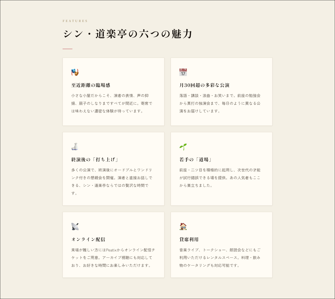 そこからは早かった。スケジュールページやご案内ページなど、必要なページは旧道楽亭サイトのURLを見せながら、「この機能を持たせたまま、シン・道楽亭のサイトのトーンに合わせて作って」と指示を出すと、すぐに完成。細かい機能やテキストの修正も、指示を出せばあっという間にやってくれます。