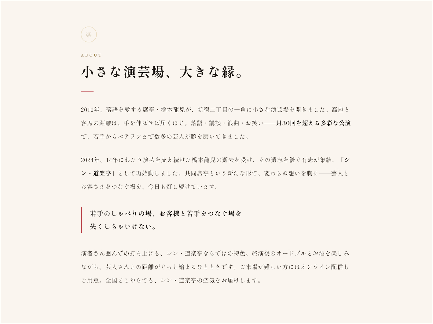 「シン・道楽亭のことを調べたうえで、はじめて来る人にもわかりやすいLP(ランディングページ)を作って」