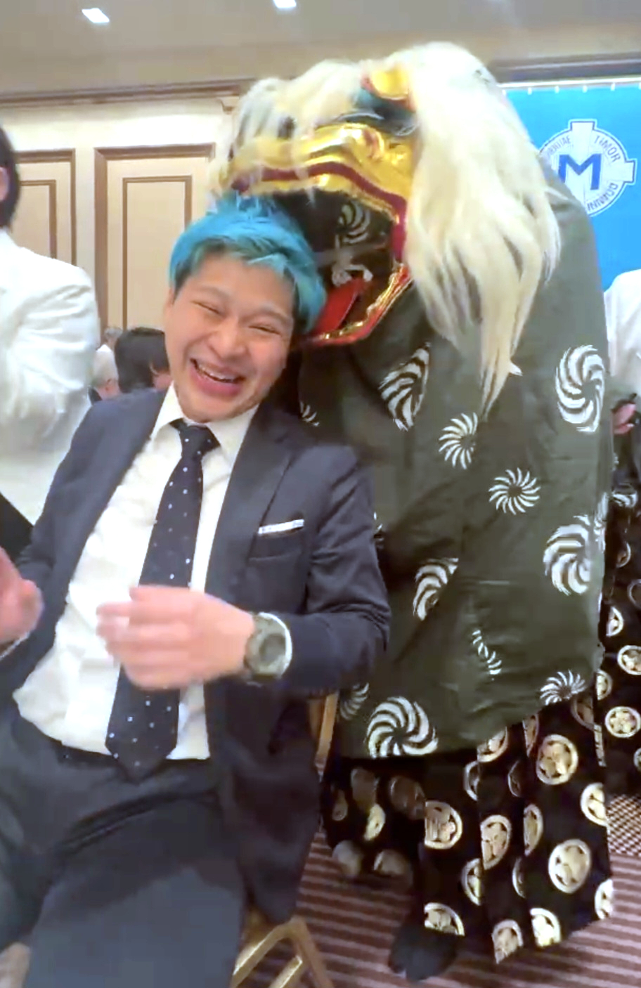 この場に参加できた喜びと、どんな形であれ、辞めずに活動を続けていたら良いことあるなぁと。その間も獅子舞は、必死にいろんなテーブルを回っていた。筋肉痛にならなければ良いと思った。