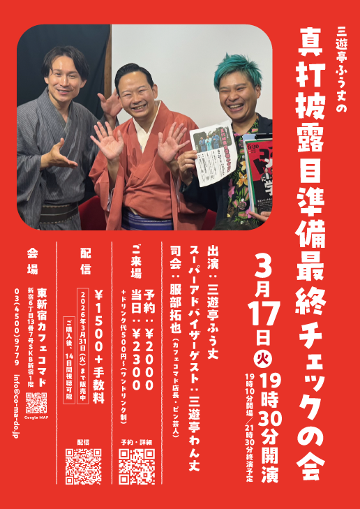 3/17に行われた『ふう丈の真打披露目準備最終チェックの会』。