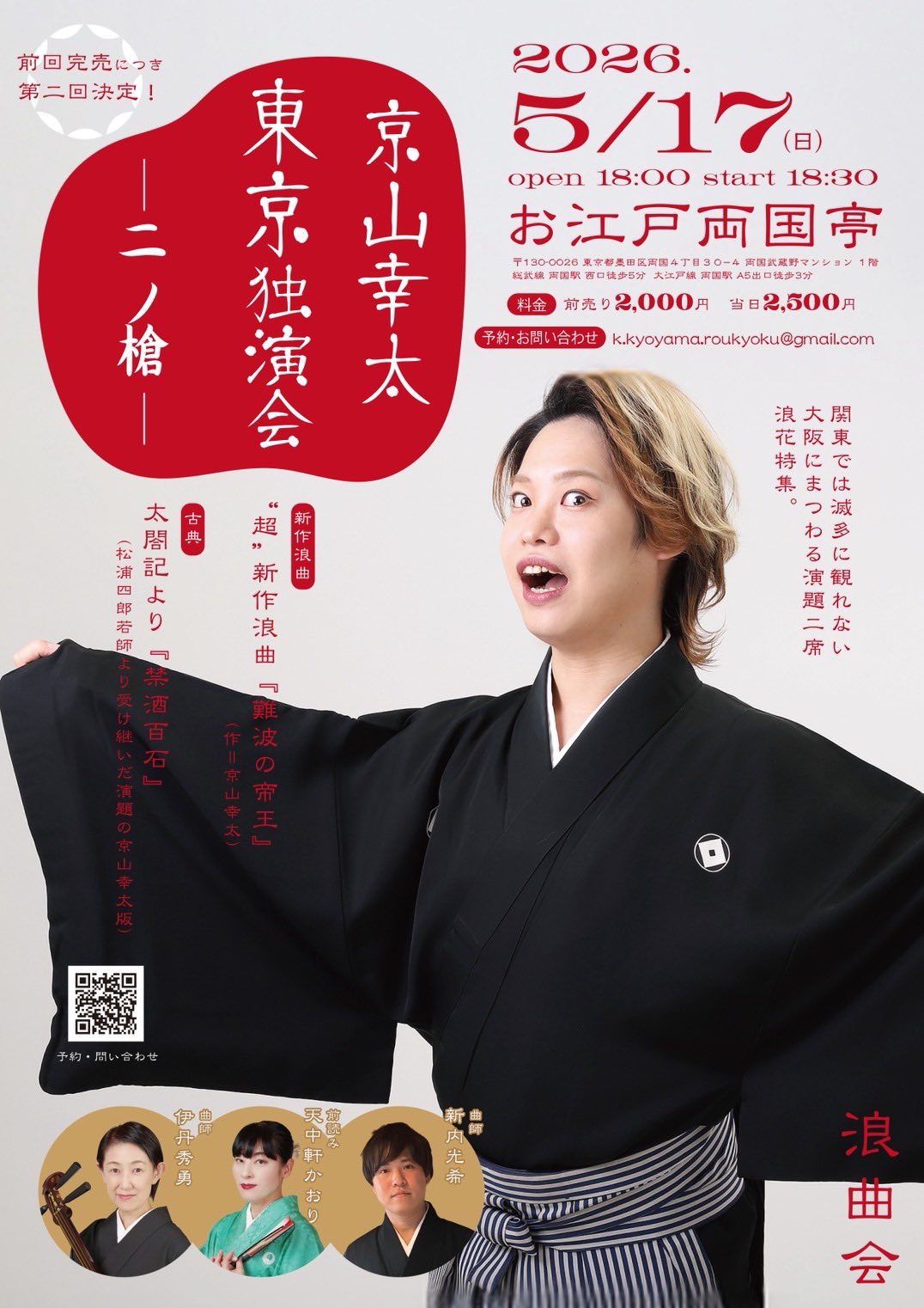 その京山幸太は、5月17日(日)にお江戸両国亭で昨年に続き、二度目の東京自主公演を行う。現時点でまだ残席があるかはわからないのだが、こちらも行ける方はぜひ。