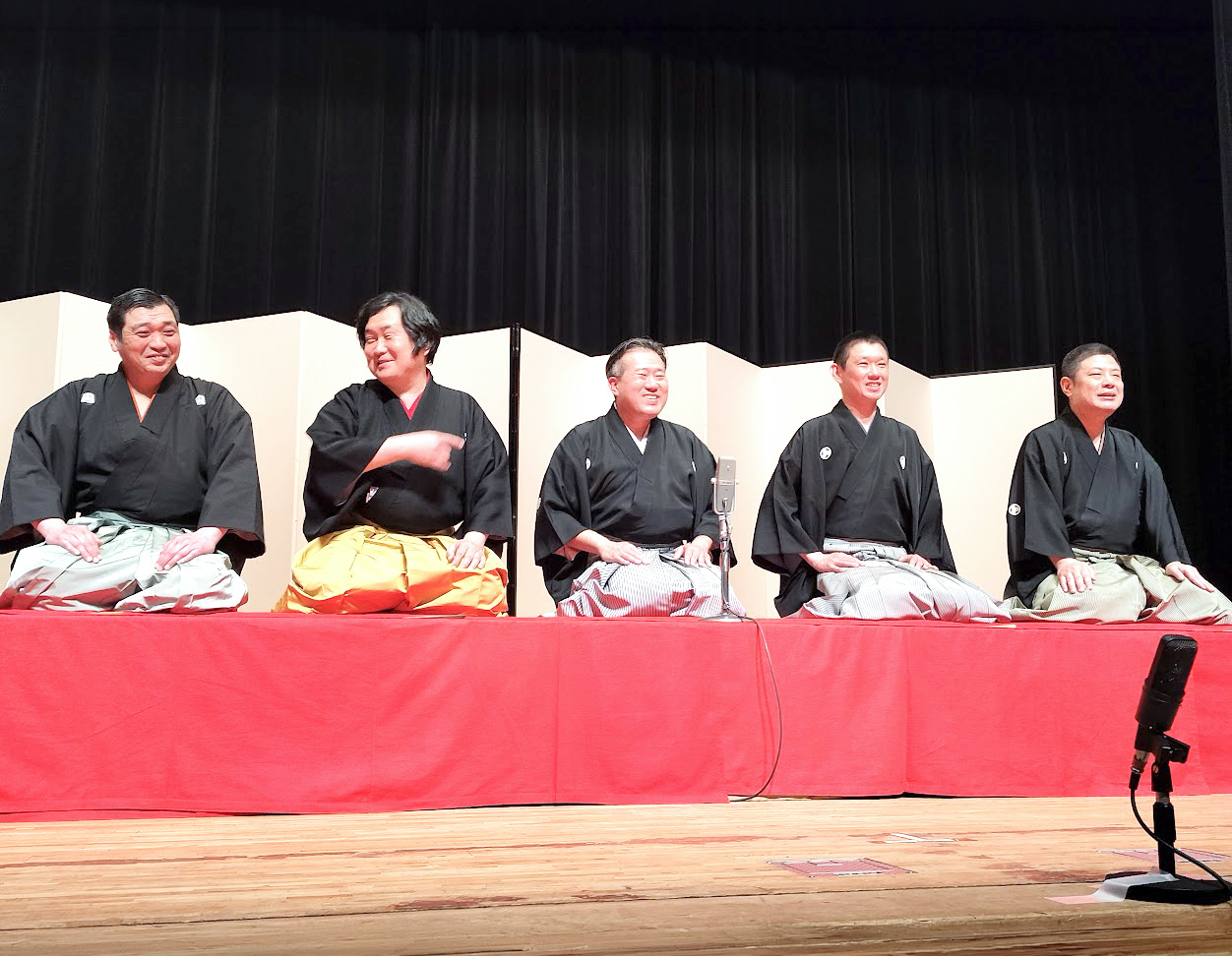 左から猪馬ぽん太さん、田辺鶴遊先生、東家一太郎師匠、岡大介さん、筆者